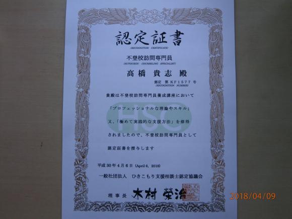 塾長の高橋が3月30日付で「不登校訪問専門員」の資格認定を受けました。塾は開かれた場所です。学習意欲のある子どもたちには最大限のサポートをしたいと考えています。これからどんなビジョンを描くか…、それが勝負です。