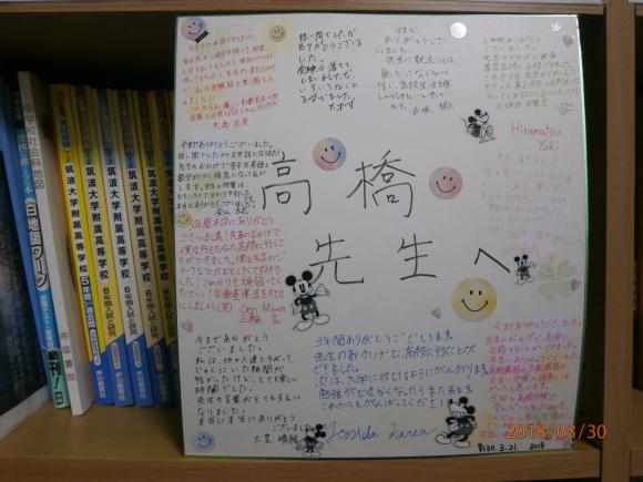 先日、旧中3生の数名が来塾しまして、おもむろに「先生、これ!」と、色紙を渡してくれました。見ると、卒塾した全員からのメッセージがあり、とても感激しました。卒塾遠足の後日、全員に声をかけて書いたとのこと。中には、友達と遊んでいる最中に連絡が行き、遊びを切り上げて色紙を書いた塾生もいたそうです。みんなが満足して塾を巣立っていてくれたと感慨深いものがありました。
